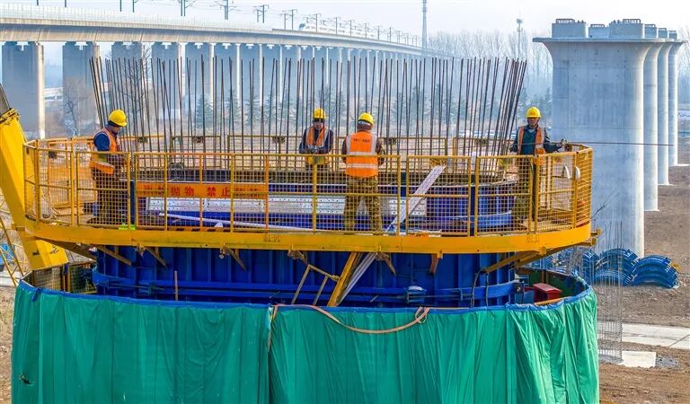 1月3日,在位于洛陽(yáng)市的焦洛平高鐵洛河特大橋建設(shè)現(xiàn)場(chǎng),工人們堅(jiān)守崗位進(jìn)行橋墩施工,抓進(jìn)度、保節(jié)點(diǎn),全力保障工程按時(shí)推進(jìn)。張怡熙 攝