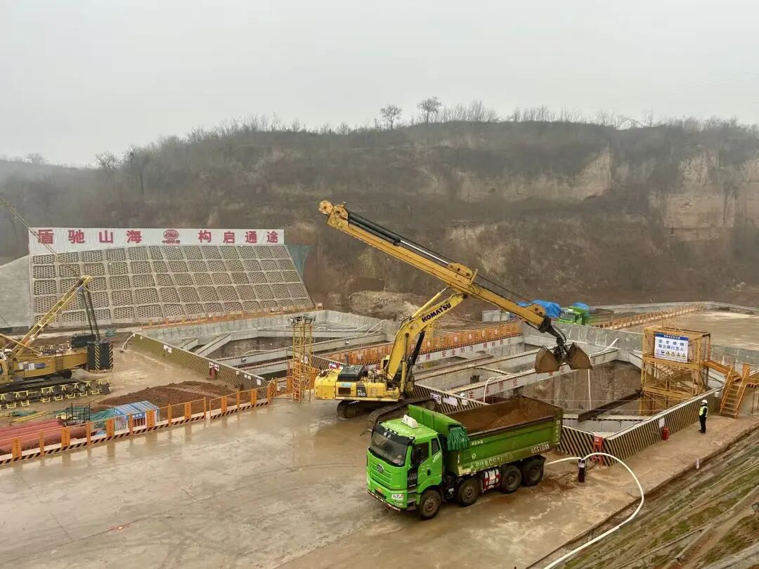 2 月 28 日,一場春雨滋潤著中原大地,也為焦濟洛平高鐵的建設增添了幾分生機。當日,頂端新聞記者來到焦濟洛平高鐵邙山隧道工程始發井施工現場,只見大型挖掘設備正在進行基坑開挖施工,現場一片忙碌景象。